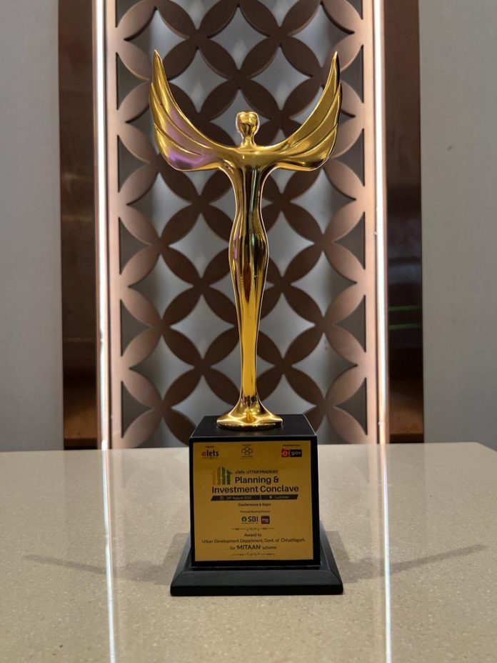 रायपुर। छत्तीसगढ़ की मुख्यमंत्री मितान योजना अपने डिजिटल नवाचार के लिए उत्तरप्रदेश में सराही गई है। उत्तर प्रदेश सरकार ने डिजिटल नवाचार में उत्कृष्ट परियोजना श्रेणी में मुख्यमंत्री मितान योजना को पुरस्कृत किया है। यह पुरस्कार लखनऊ में हुए सम्मान समारोह में दिया गया। यह पुरस्कार उत्तर प्रदेश योजना एवं निवेश कान्क्लेव में दिया गया। इस कान्क्लेव का आयोजन उत्तरप्रदेश सरकार तथा इलेट्स ने किया था। मुख्यमंत्री मितान योजना के लिए छत्तीसगढ़ को यह सम्मान डिजिटल माध्यम का उपयोग करते हुए नगरीय सेवाओं को आसानी से आम जनता को उपलब्ध कराने दिया गया।