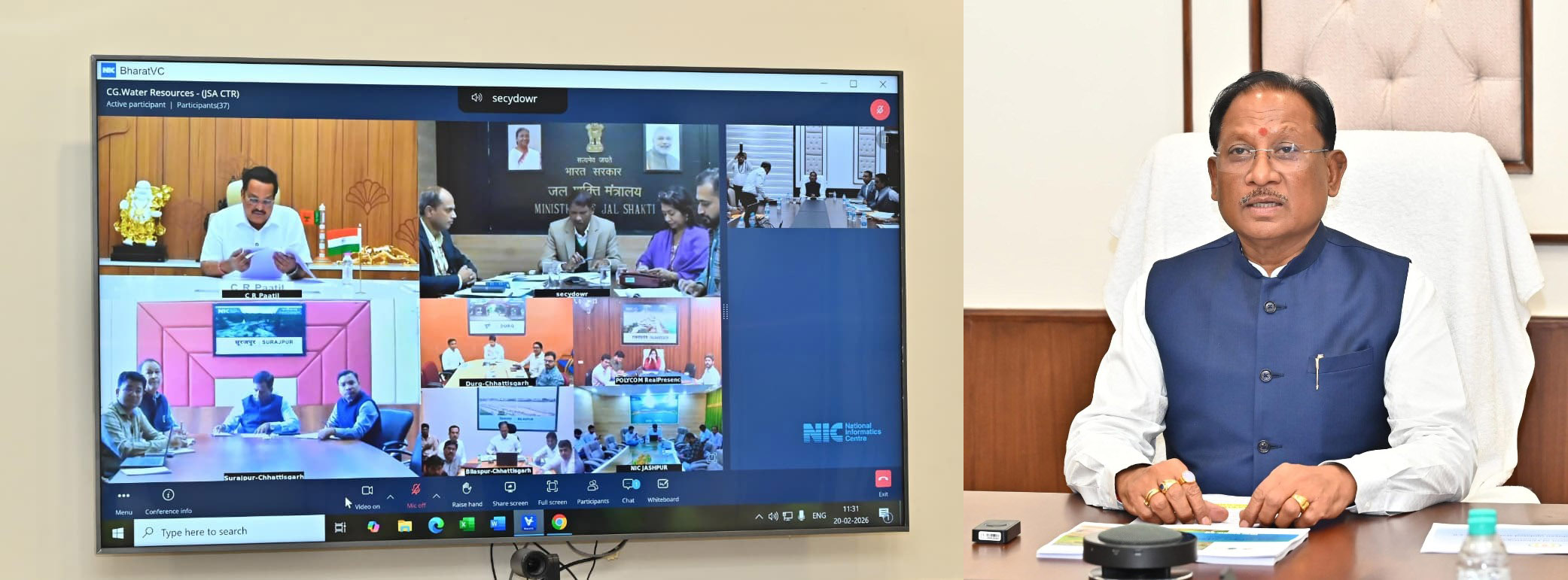 रायपुर। मुख्यमंत्री विष्णु देव साय और केंद्रीय जल शक्ति मंत्री सी. आर. पाटिल की संयुक्त अध्यक्षता में आज नवा रायपुर स्थित मुख्यमंत्री निवास कार्यालय में आयोजित बैठक में प्रदेश में “जल संचय-जन भागीदारी 2.0” अभियान के क्रियान्वयन की गहन समीक्षा की गई। केंद्रीय मंत्री पाटिल इस बैठक में वर्चुअली शामिल हुए और बैठक को संबोधित किया। इस दौरान बिलासपुर, दुर्ग और सूरजपुर जिले के कलेक्टरों ने अपने-अपने जिलों में अभियान के अंतर्गत संचालित कार्यों और गतिविधियों की विस्तृत जानकारी प्रस्तुत की।