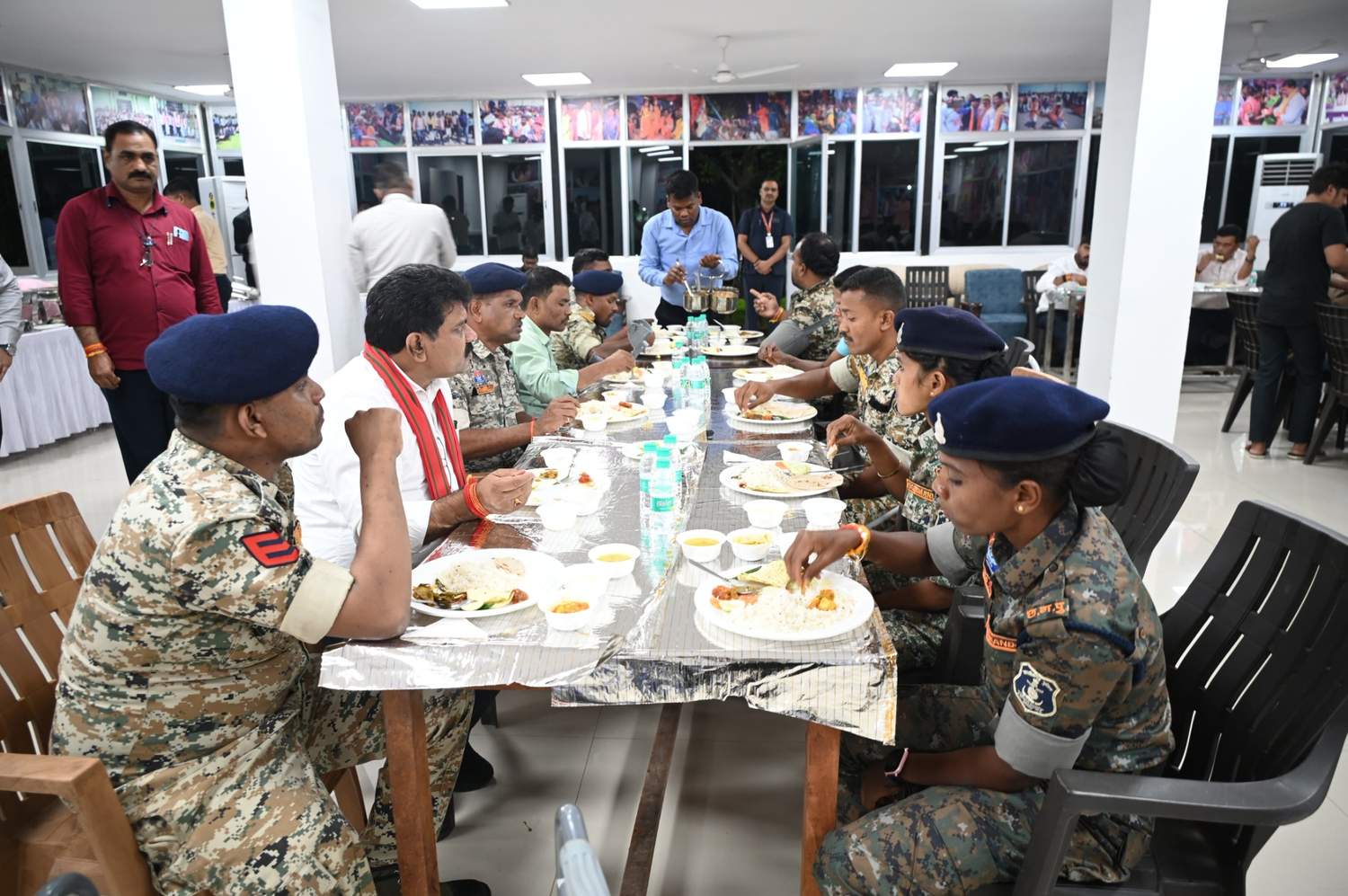 रायपुर। उपमुख्यमंत्री विजय शर्मा ने नक्सल क्षेत्रों में अपनी वीरता से विकास का मार्ग खोलने वाले जवानों के लिए अपने निवास पर रात्रि भोज का आयोजन किया। इस रात्रिभोज में बस्तर संभाग के सुकमा, बीजापुर दंतेवाड़ा, नारायणपुर, बस्तर, कांकेर, कोण्डागांव जिलों से पुलिसबल, डीआरजी और बस्तर फाइटर के जवान शामिल हुए। जहां उपमुख्यमंत्री विजय शर्मा ने सभी के साथ भोजन किया और सभी ने अपने अनुभवों को उनके साथ साझा किया। इस अवसर पर डीआरजी के जवानों ने बताया कि कैसे दुर्गम पहाड़ियों और ऊंचाइयों पर उन्होंने नक्सलियों से लोहा लिया, कैसे स्थानीय लोग उन्हें उम्मीद की नजरों से देखते हैं, किस प्रकार नक्सल आतंक के हटने के साथ अब बस्तर फिर से विकास के रास्तों पर बढ़ रहा है। जवानों ने बताया कि अब कैम्पों की स्थापना के साथ दूरस्थ ग्रामों में ‘नियद नेल्लानार’ योजना और ‘इलवद ग्राम पंचायत’ जैसी योजनाओं से ग्रामीणों में विश्वास जागा है और अब सभी बस्तरवासी नक्सलवाद से मुक्त होकर विकास के नए रास्तों पर चलने को तत्पर हैं।