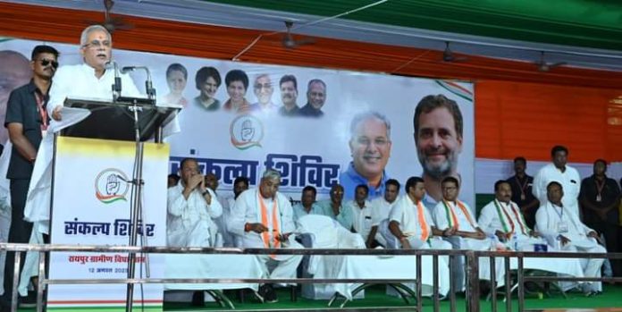 प्रदेश कांग्रेस अध्यक्ष दीपक बैज ने कहा कि संकल्प शिविर का आज दूसरा दिन है कल से शुरूआत हुई कल दो विधानसभा में संकल्प शिविर हुआ। आज तीन विधानसभा में हो रहा संकल्प शिविर का मकसद है कि हमारा एक-एक कार्यकर्ता इस शिविर के माध्यम से कांग्रेस सरकार की योजनाओं को जनता तक पहुंचाये और संकल्प लेकर जाये। छत्तीसगढ़ में कांग्रेस की सरकार पुनः बनाना है और गांव गरीब लोगो की सेवा करना है ये कांग्रेस का संकल्प शिविर का मकसद है। छत्तीसगढ़ में कांग्रेस सरकार का साढे चार साल पूरा हुआ। भाजपा के 15 साल की सरकार में सिर्फ और सिर्फ झूठ और फरेब की राजनीति चला है। जब 15 साल भाजपा की सरकार थी तब उस समय मोबाईल बाटने का काम चला तो कहीं चावल त्यौहार और चाउर वाले बाबा के नाम से पूरा 15 साल चले गया। लेकिन आज कांग्रेस सरकार आने के बाद बेरोजगार युवाओ को नौकरी देने का काम किया। कांग्रेस सरकार ने अपने घोषणा पत्र के एक-एक वायदा को पूरा कर रही है। जो घोषणा पत्र में हम उल्लेख भी नहीं किये थे उससे ज्यादा काम भूपेश बघेल की सरकार ने किया है। भाजपा के 15 साल की असफलता और कांग्रेस सरकार के साढ़े चार की सफलता को जनता के बीच में लेकर जाना है। संकल्प शिविर का यह मकसद है सत्ता पना हमारा मकसद नहीं हमारा मकसद है छत्तीसगढ़ में शांति लाना। कांग्रेस का मकसद है छत्तीसगढ़ की संस्कृति को बचाना, छत्तीसगढ़ का विकास करना है। धान के कटोरा कहे जाने वाले छत्तीसगढ़ के किसानों को मजबूत करना, गांव को मजबूत करना, माता बहनो को मजबूत करना यहीं हमारा संकल्प है। भाजपा भाई से भाई को लड़ाने का काम कर रहा है। धर्म की राजनीति कर रही है और छत्तीसगढ़ में अशांति फैलाने का काम कर रही है। भाजपा चाहती है छत्तीसगढ़ जलता रहे और भाजपा आदिवासियों का विकास नहीं देखना चाहती है। भूपेश बघेल की सरकार चाहती है बस्तर के आदिवासियों को हाथ मजबूत हो और कांग्रेस सरकार में आदिवासियों को महुआ, तेंदुपत्ता, इमली सभी के दाम अच्छे मिल रहे है। छत्तीसगढ़ में कांग्रेस की सरकार बनने के बाद मुख्यमंत्री भूपेश बघेल के नेतृत्व में छत्तीसगढ़ में सभी वर्गो के लिये काम किया है। हमारे कार्यकर्ताओं ने कांग्रेस सरकार की योजनाओं को जमीनी स्तर तक जनता तक घर-घर तक पहुंचाने का काम किया। हमारी सरकार की मंशा है सरगुजा से लेकर बस्तर तक सरकार की योजनाओं का लाभ मिलना चाहिए यह कांग्रेस पार्टी का मंशा है। दो महीने बाद चुनाव है और एक-एक विधानसभा की सीट जीतना है। साढ़े चार साल तक कांग्रेस सरकार बनने के बाद जो काम भूपेश बघेल की सरकार कर रही है उन कामों को देखकर भाजपा के लोग इन साढ़े चार सालों में हताश हो गये और 2023 में फिर से कांग्रेस सरकार बनेगी।
