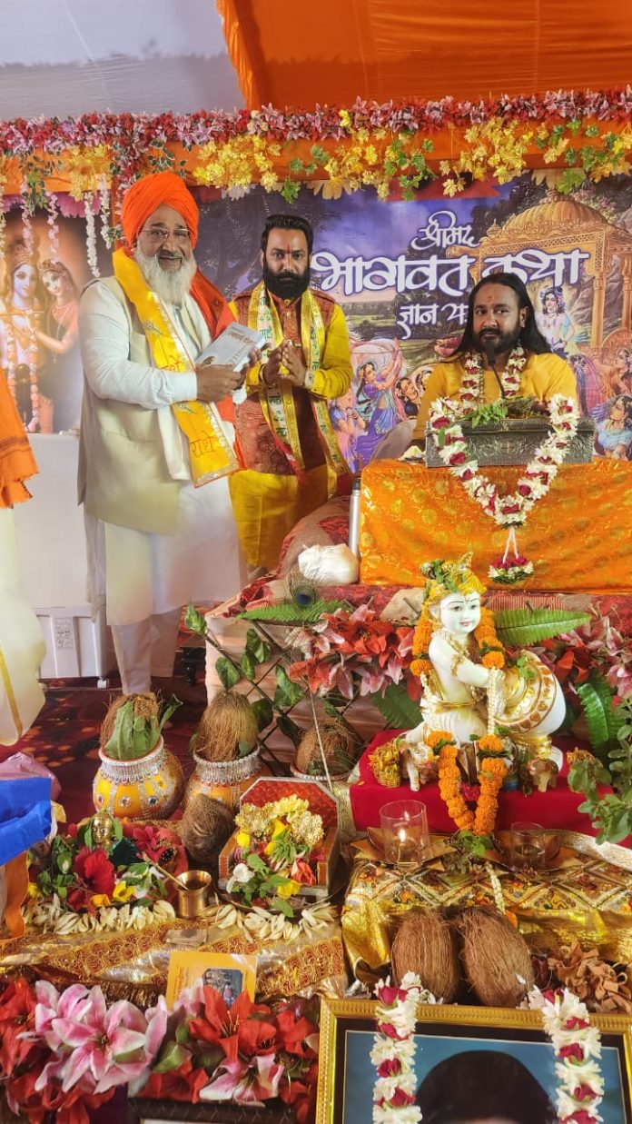 रायपुर। राष्ट्रीय करणी सेना के राष्ट्रीय उपाध्यक्ष एवं प्रदेश अध्यक्ष वीरेन्द्र सिंह तोमर एवं समस्त तोमर परिवार द्वारा आयोजित 10 अगस्त से शुरु हुई श्रीमद् भागवत कथा ज्ञान यज्ञ की पूर्णाहुति हुई। समापन दिवस की कथा में रायपुर सहित कई अन्य शहरों से कथा सुनने पधारे श्रद्धालुओं ने बढ़-चढ़कर अपनी उपस्थिति दी। कथा के दौरान 36 कौम सर्वसमाजों के प्रमुख बंधुओं, प्रदेश के अनेकों लोकप्रिय राजनेताओं एवं अनेकों गणमान्य सम्माननीय जन भगवत कथा का अमृत पान करने इस अवसर पर पहुंचे,। कथा के अंतिम दिवस पर वृन्दावन के कथा व्यास श्री राजीव नयन जी महाराज द्वारा सुदामा चरित्र की कथा का रोचक वाचन किया गया।