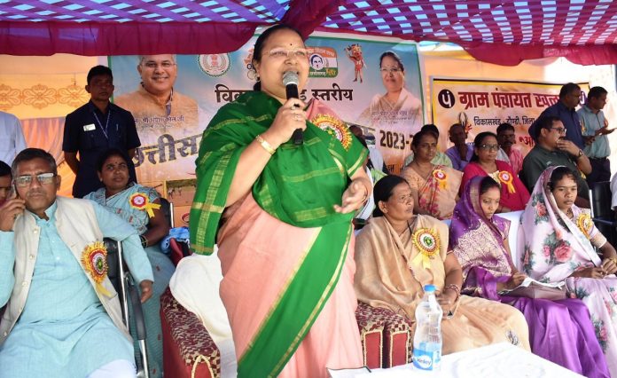 महिला एवं बाल विकास मंत्री अनिला भेंड़िया ने ग्रामीणों को संबोधित करते हुए कहा कि पिछले साढ़े चार वर्षों में छत्तीसगढ़ राज्य ने सभी क्षेत्रों में उल्लेखनीय उपलब्धि हासिल कर विकास की नई कीर्ति हासिल की है। उन्होंने मुख्यमंत्री भूपेश बघेल के कुशल नेतृत्व में पिछले साढ़े चार वर्षों में हुए विकास कार्यो की मुक्तकंठ से सराहना की। इस अवसर पर उन्होनंे राज्य सरकार द्वारा संचालित की जा रही राजीव गांधी किसान न्याय योजना, भूमिहीन किसान मजदूर न्याय योजना, बेरोजगारी भत्ता योजना, गोधन न्याय योजना सहित विभिन्न जनकल्याणकारी योजनाओं के अलावा छत्तीसगढ़िया ओलंपिक, राजीव युवा मितान क्लब के महत्व एवं उद्देश्यों के संबंध में प्रकाश डालते हुए, इसे राज्य के विकास के लिये मिल का पत्थर बताया।