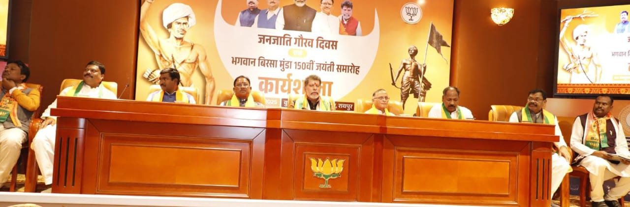 रायपुर। भारतीय जनता पार्टी प्रदेश कार्यालय कुशाभाऊ ठाकरे परिसर में जनजाति गौरव दिवस एवं भगवान बिरसा मुण्डा जी की 150वीं जयंती मनाने कार्यशाला आयोजित की गई। कार्यशाला को संबोधित करते हुए मुख्यमंत्री विष्णुदेव साय ने कहा कि प्रधानमंत्री नरेन्द्र मोदी ने जनजाति समुदाय के सम्मान में 15 नवम्बर को जनजाति गौरव दिवस के रूप में मनाने की शुरूआत की। उन्होंने कहा कि जनजातीय गौरव दिवस की शुरुआत 2021 में हुई, प्रधानमंत्री नरेन्द्र मोदी के नेतृत्व में केन्द्र की भाजपानीत सरकार ने इसे आधिकारिक तौर पर घोषित किया। उन्होंने कहा कि प्रधानमंत्री नरेन्द्र मोदी ने 15 नवंबर को भगवान बिरसा मुण्डा की स्मृति में जनजातीय गौरव दिवस मनाने का निर्णय लिया है। इस वर्ष भगवान बिरसा मुण्डा की 150वीं जयंती है। छत्तीसगढ़ में भी इसे भव्य रूप से मनाया जाएगा। मुख्यमंत्री साय ने कहा कि जनजातीय समाज का गौरवशाली इतिहास रहा है। यह सोचकर गर्व होता है कि अनेक महान स्वतंत्रता सेनानियों का जन्म जनजातीय समाज में हुआ। अपने देश के लिए संघर्ष करने की परम्परा जनजातीय समाज में प्रारंभ से रही है। शहीद वीर नारायण सिंह, गैंदसिंह, गुण्डाधूर जैसे अनेक महान नायकों ने अपना बलिदान दिया।